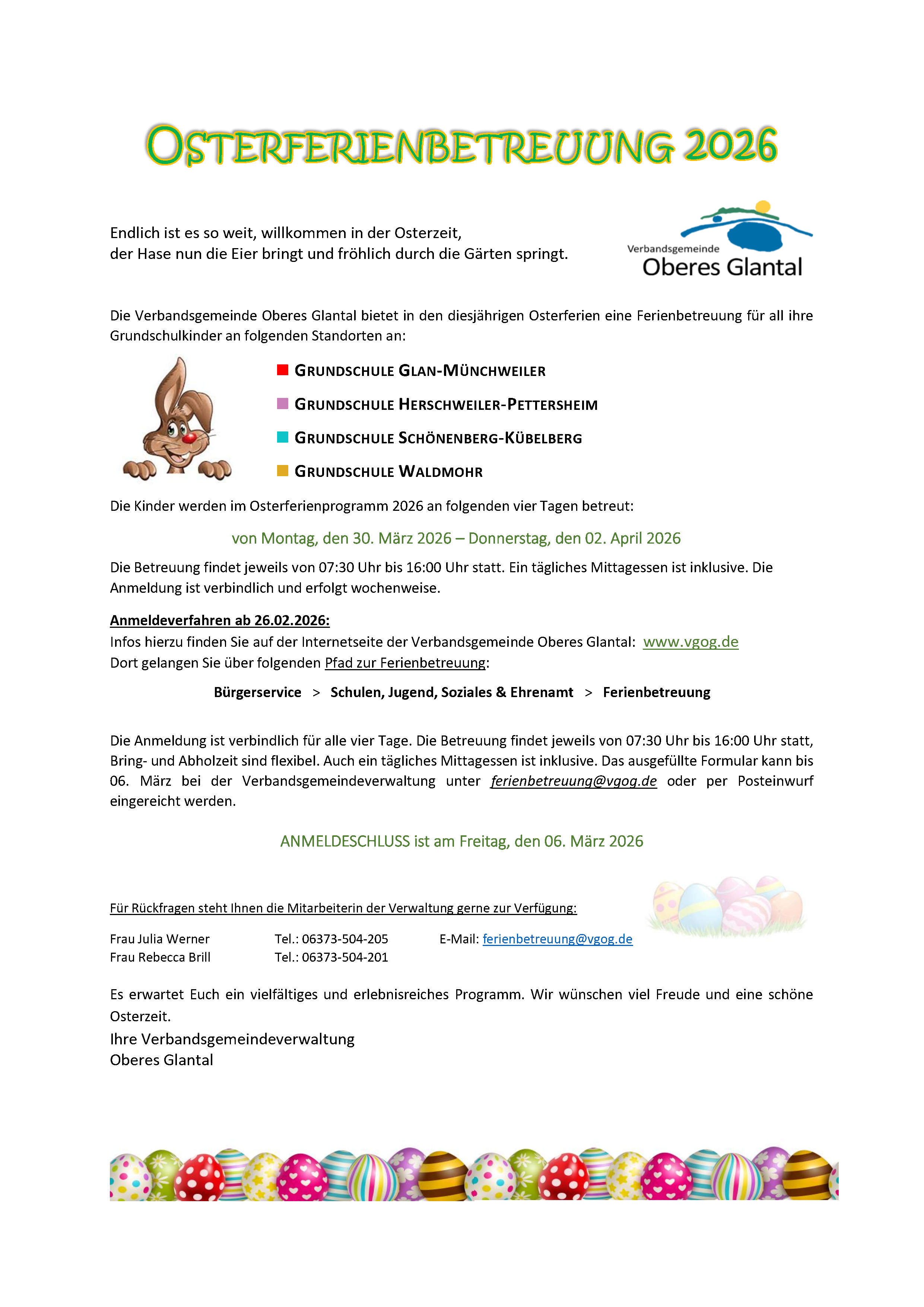 Die Ferienbetreuung findet statt: